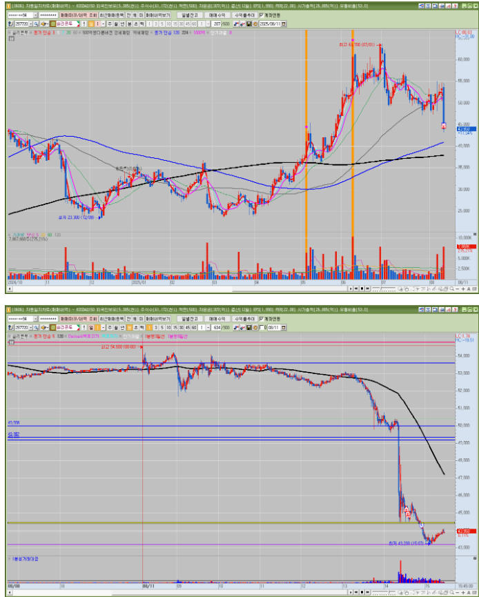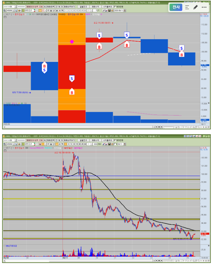 매매한 종목의 일봉, 분봉의 자리