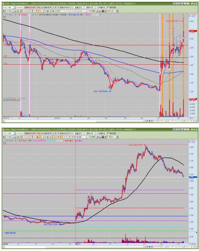 상한가 이후에 1일차 2일차 정도까지만 매매했어야 맞다. 오늘은 사실 욕심이 들어간게 맞고 굳이 매매할 필요가 없는 자리였다. 매매를 고려하더라도 충분히 조정을 기다리고 가격 메리트가 생긴 뒤에 매매를 고려했어야 했다.