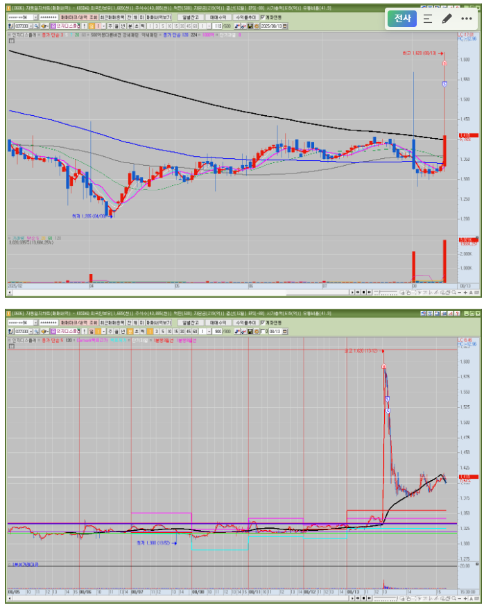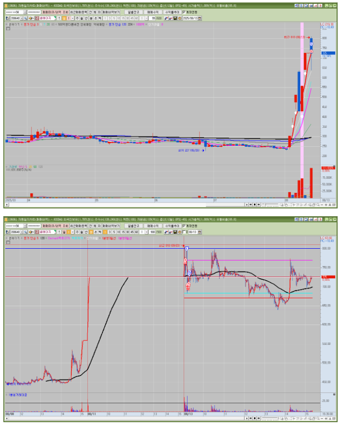 동전주에 급등급락 매우 심하다. 시총 1000억도 안되는 종목인데