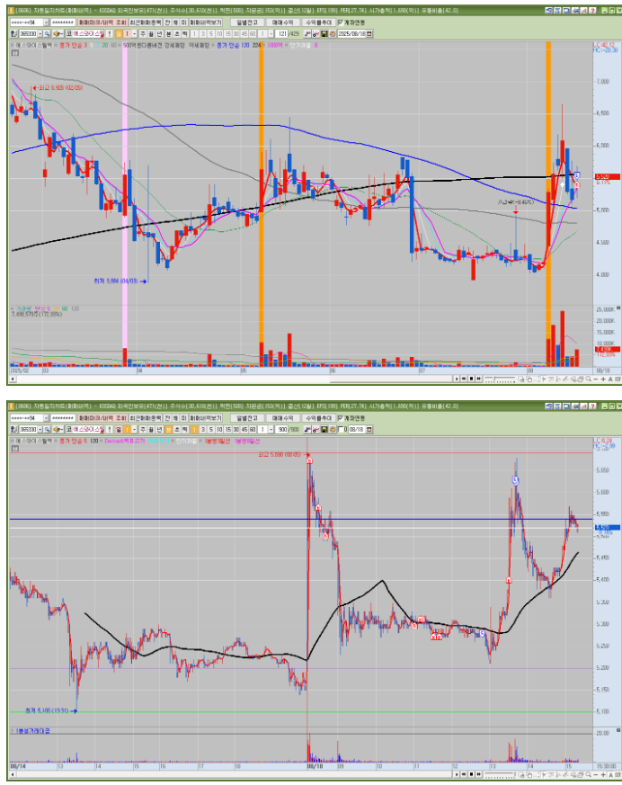수젠텍과 더불어 분봉상 강하게 반등하는 모습