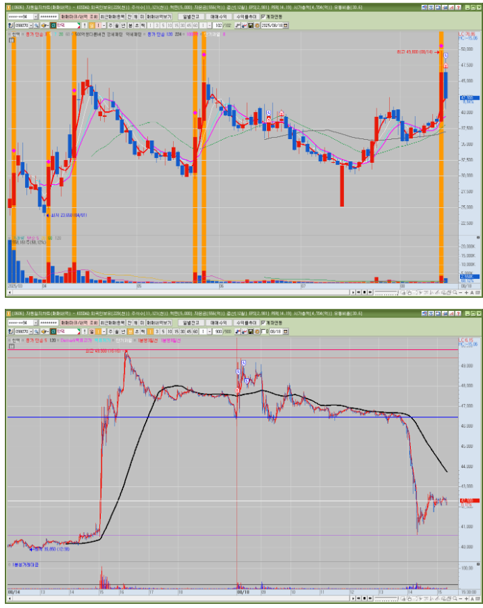매매한 종목의 일봉, 분봉의 자리