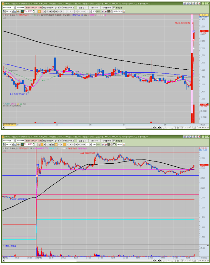 전일 거래대금 300억 가까이 터지면서 상한가 마무리한 상황에서 시가 갭띄우고 깼다가 다시 잡아주는 모습 확인