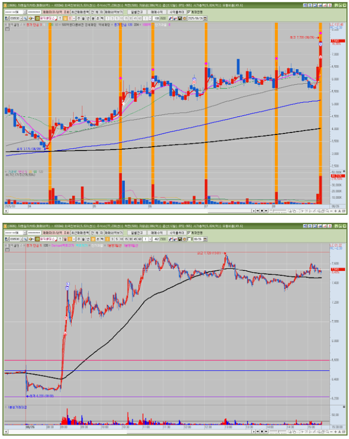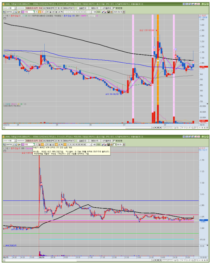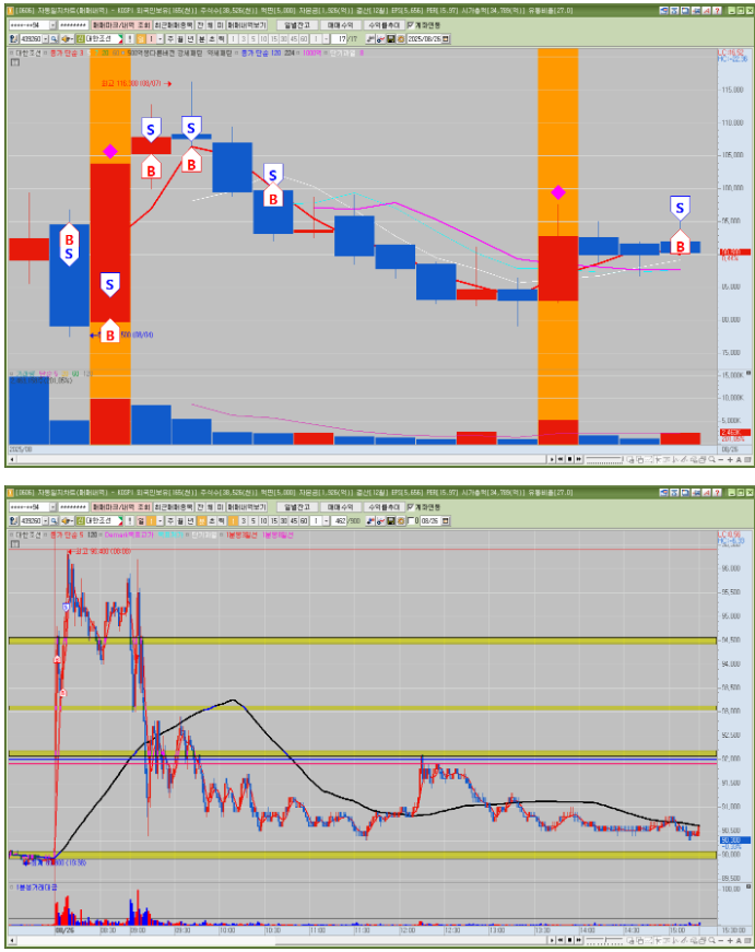 매매한 종목의 일봉, 분봉의 자리