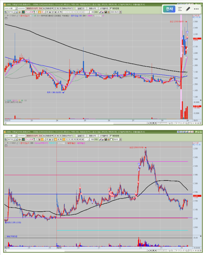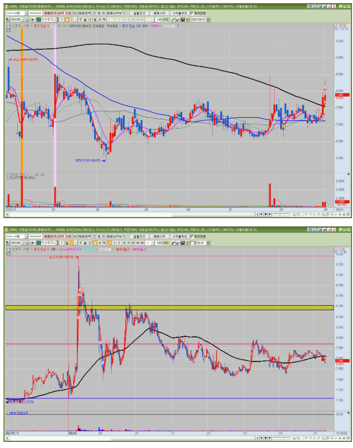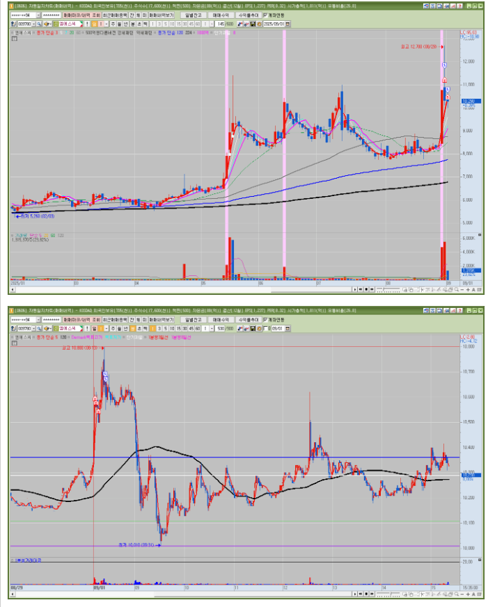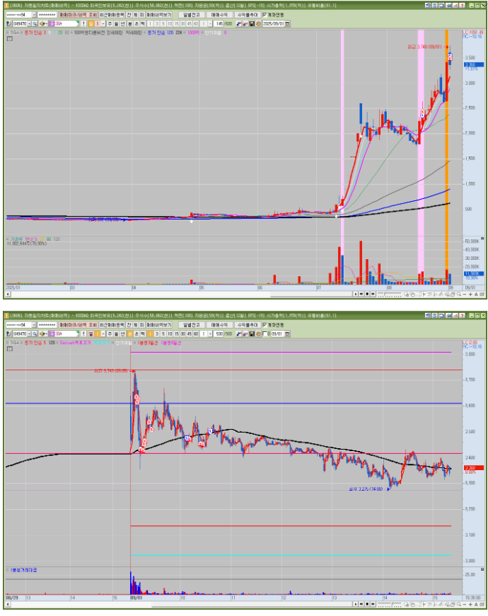 재료 + 종목의끼, 일봉차트 및 분봉 차트 패턴