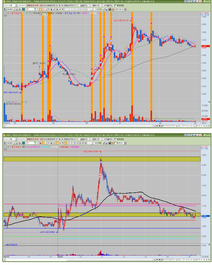 윗꼬리 잘달리고 끼 좋다. 호가 보통 거래량 잘터진다. 테마성이 짙은 종목이다.