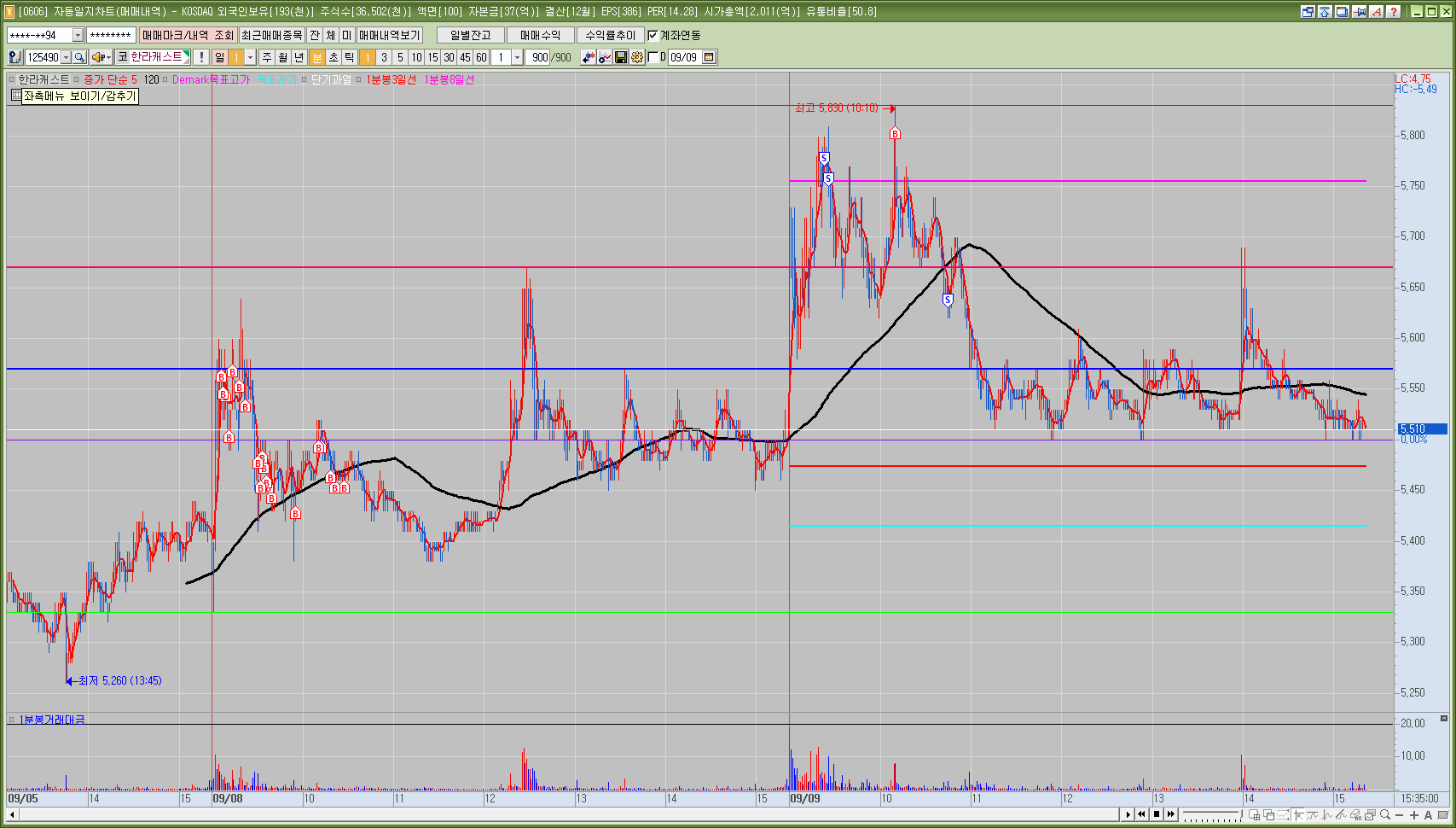 매매한 종목의 일봉, 분봉의 자리