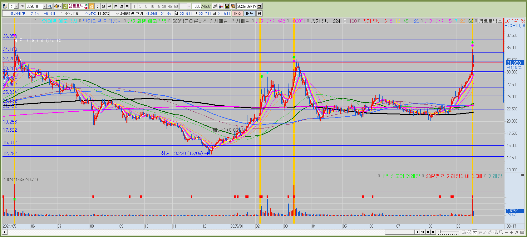 삼성전자 및 SK하이닉스의 강세에 이어서 반도체 시황이 오면서 켐트로닉스도 신고가부근까지 반등을 하고 있다. 켐트로닉스의 주된 테마는 유리기판이긴 하지만 시총 5000억대에 재무도 나쁘지 않기 때문에 테마성으로 접근하기 보다는 반도체 시황일때 투자를 고려해볼 수 있는 종목이다.