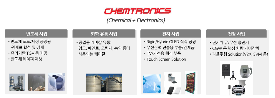삼성전기 반도체 유리기판 컨소시엄에 속한 켐트로닉스는 글로벌 글라스 메이커로부터 반도체용 유리기판 소재를 공급 받아 양산품을 만드는 것을 목표로 하고 있다. 반도체 유리기판은 소재 가공, TGV 공정, 구리도금, 에칭(ethcing), 슬리밍(slimming) 등 후가공을 거쳐 완성되는 과정을 거친다. 켐트로직스의 최종 목표는 TGV 공정 이후 후가공까지 이르는 밸류체인을 확보하는 뱡향이다.