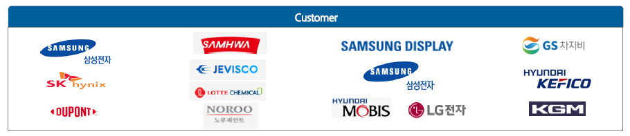 ▷주요 고객사 및 파트너사 : 삼성전자, SK하이닉스, 삼성디스플레이, 현대모비스, LG전자, 동진쎄미켐, 롯데케미칼 등