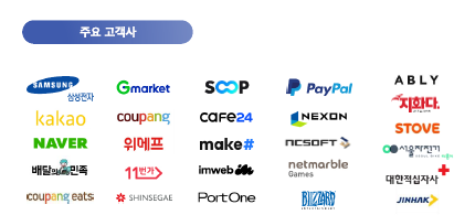 ▷주요 고객사 및 파트너사 : 삼성전자, G마켓, SOOP, 페이팔, 카카오, 네이버, 쿠팡, 카페24, 넥슨, 배달의민족, 넷마블, 블리자드 등