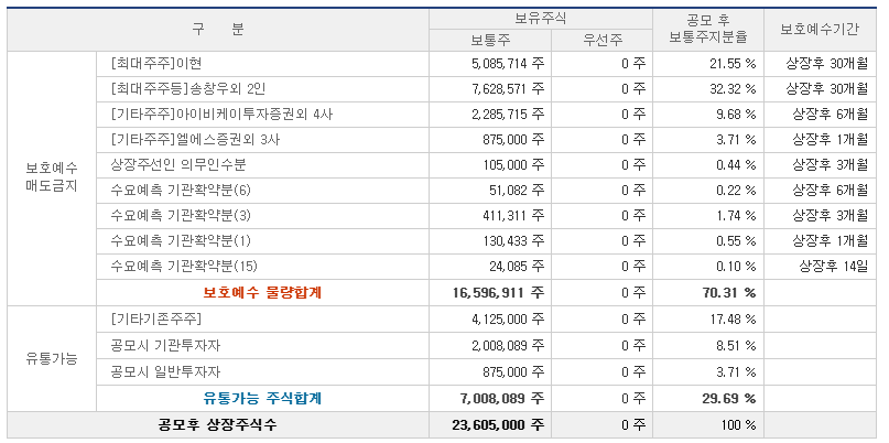 ●보호예수물량 : 2026년1월7일 9.68%