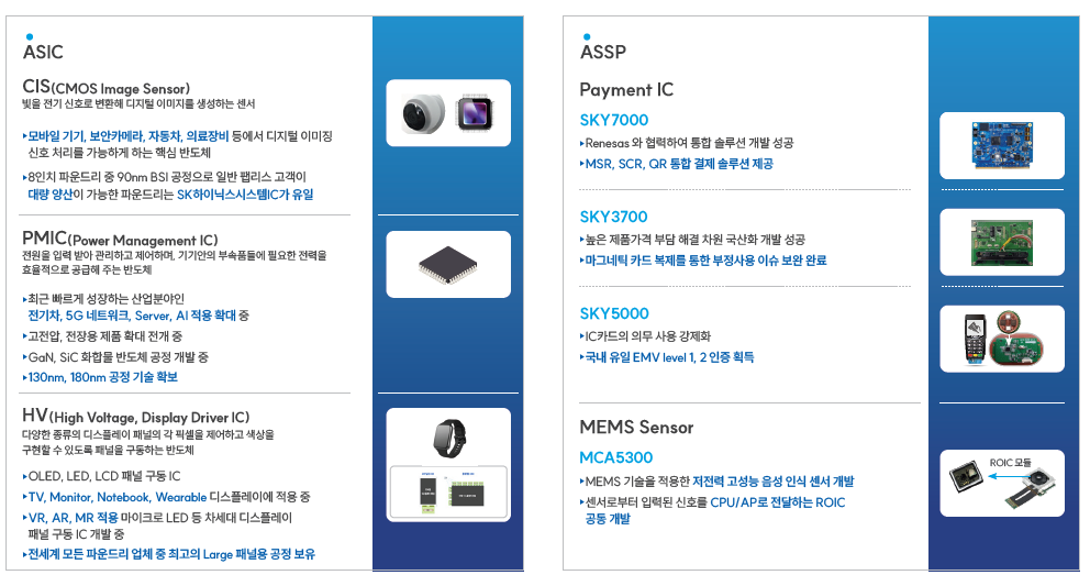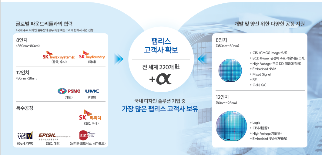 한편, 싸이닉솔루션은 SK하이닉스시스템IC의 국내 유일 디자인하우스로, 시스템반도체 설계 전문 기업이다. 전력관리반도체(PMIC), 디스플레이 구동칩(DDI), 이미지 센서(CIS) 등 다양한 영역에서 칩 설계 역량을 보유하고 있으며, 특히 8인치 및 12인치 파운드리에 최적화된 플랫폼을 제공하고 있다.