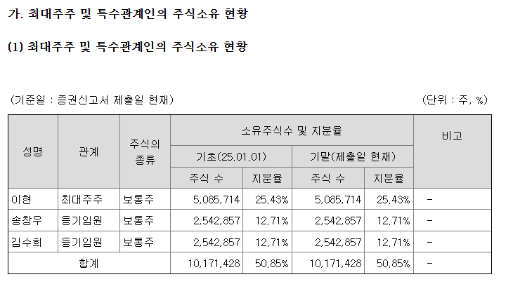 ●최대주주 및 특수관계인 지분 : 50.85%
