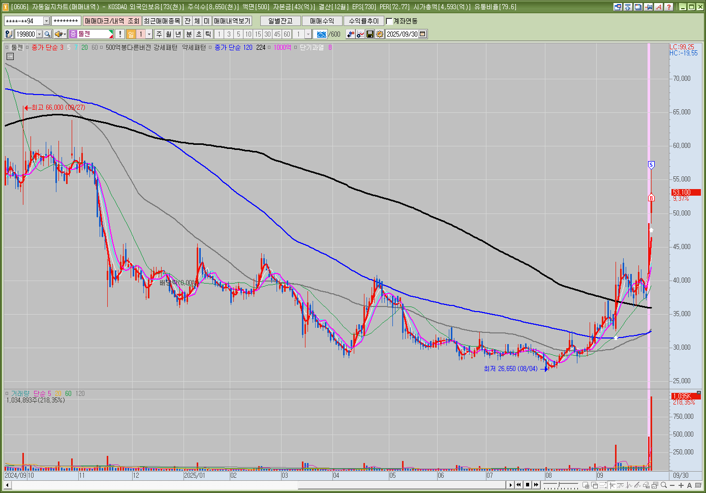 매매한 종목의 일봉, 분봉의 자리