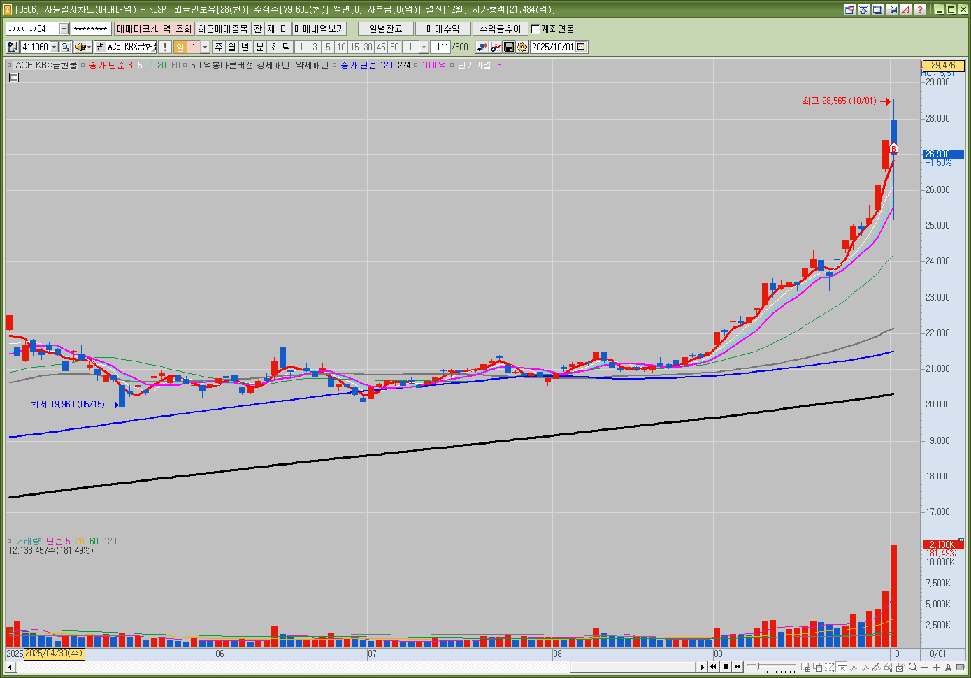 일봉 : 460억, 370억으로 연속상한가 이후 고가대비 30% 이상 하락해준뒤에 반등