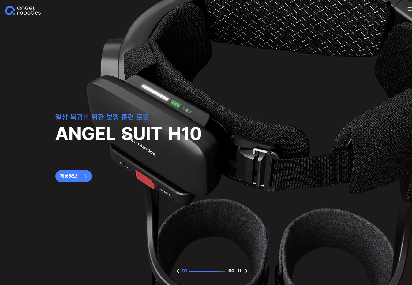 엔젤로보틱스는 인간의 물리적 한계를 보완하는 웨어러블 로봇 전문 기업이다. 재활 의료 전문 로봇인 엔젤메디(angel MEDI)를 주요 제품으로 생산하며 기타 제품군으로는 산업용 로봇인 엔젤기어(angel GEAR), 일상생활 보조용 로봇인 엘젤슈트(angel SUIT) 등이 있다