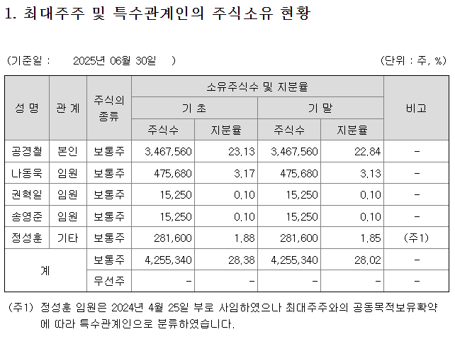 ●최대주주 및 특수관계인 지분 : 28.02%