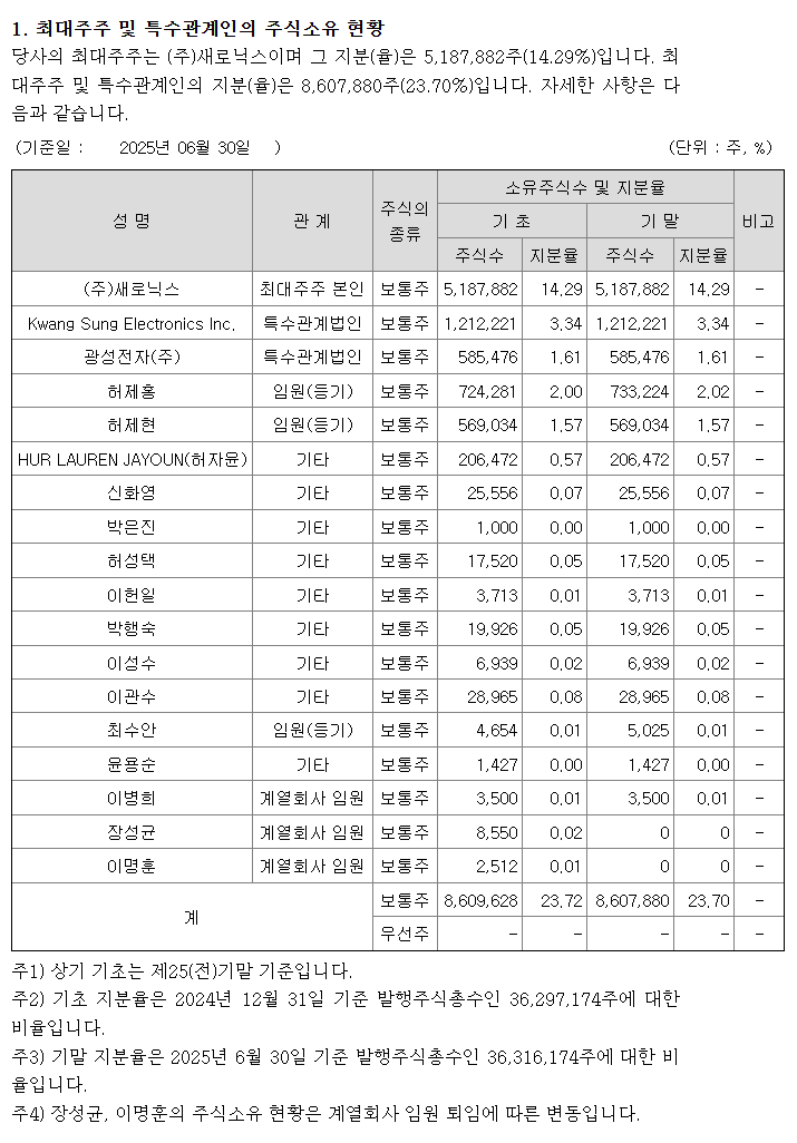 새로닉스의 반기보고서에 따르면 새로닉스는 엘앤에프의 지분 6,400,103주를 보유 중이다.11일 엘앤에프의 가격 231,000원으로 환산 시 이는 1조4700억원에 달한다. 엘앤에프의 실적 발표에 최대주주인 새로닉스의 수혜 예상에 투자자들의 관심이 집중된 것으로 풀이된다.