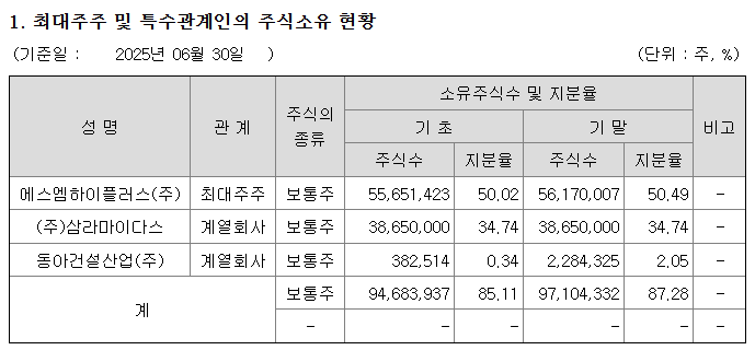 에스엠하이플러스, 에스엠벡셀 주식 1만1000주 취득//2025.09.05, 블로터 박선우 기자