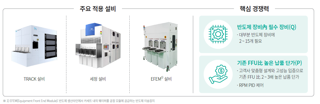 고객 주문사양에 부합하는 제품을 고객에게 제안해 수주하면 설계·부품수급·제작·평가·설치 과정을 거쳐 제품을 납품하는 구조의 B2B 비즈니스다. 삼성전자와 SK하이닉스를 비롯해 세메스, 제우스, 싸이맥스, 이오테크닉스, ATI 등 반도체 제조업체들이 주요 고객사다.
