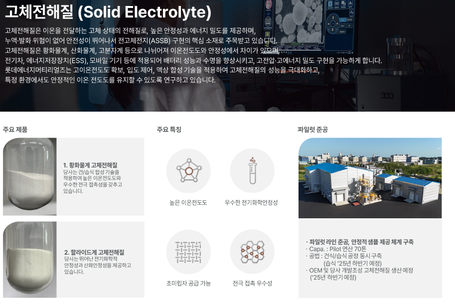 [특징주]롯데에너지머티리얼즈, 황화물계 고체전해질 공장 완공에 ↑ (edaily.co.kr)//2024.09.05, 이데일리 박정수 기자