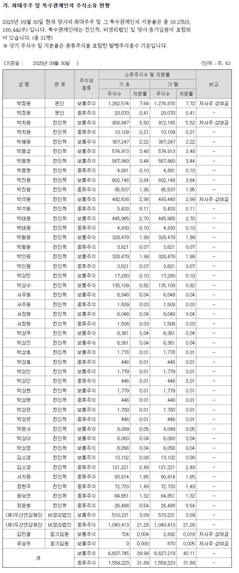 ▷최대주주 및 특수관계인 현황
