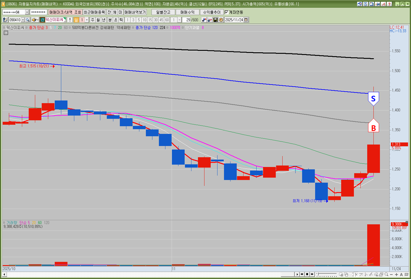덕신이피씨 당일 매수 매도