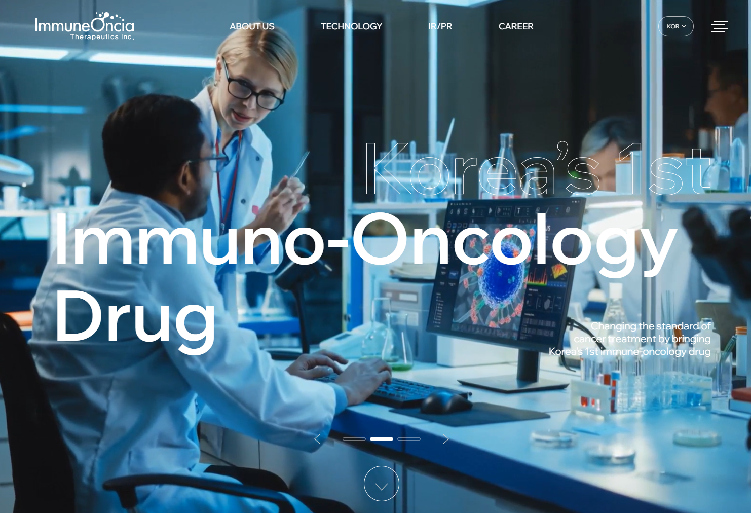이뮨온시아는 'IMC-001(PD-L1 단클론항체)', 'IMC-002(2세대 CD47 단클론항체)'를 바탕으로 단일항체 가치를 입증한 후 'IMC-201', 'IMC-202' 등 이중항체 기반 면역항암제 플랫폼으로 확장하는 '프랜차이즈 항체 전략'을 추진하고 있다.