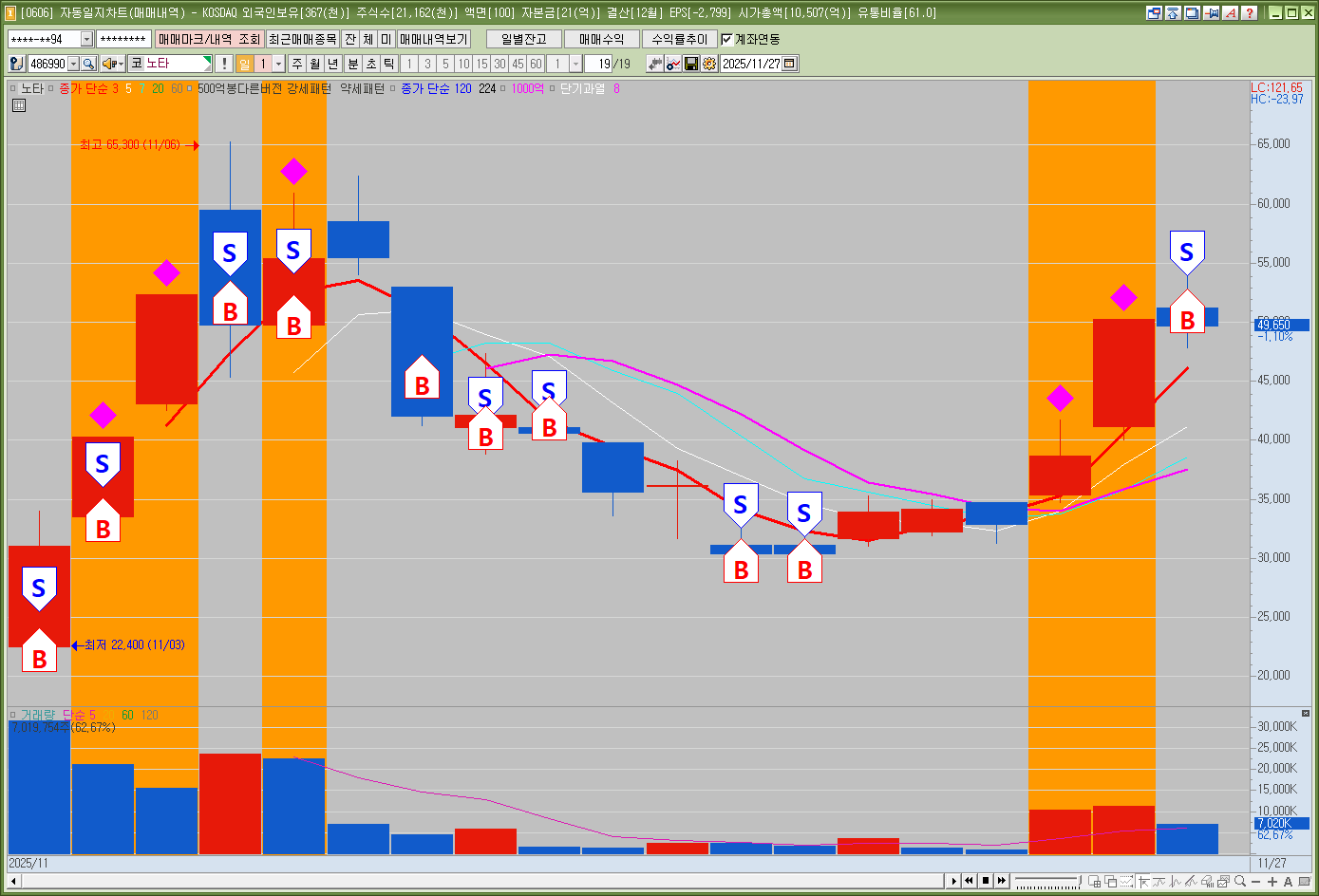 전일 미장에서 반도체 관련섹터가 강하게 반등을 줬고, 쎄크도 11월25일 2700억으로 박스권 뚫어주고 고가놀이중에 NXT에서부터 시가 갭 띄우면서 강하게 반등하는 모습 확인