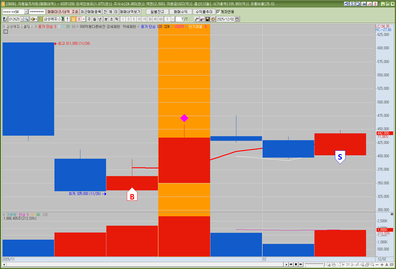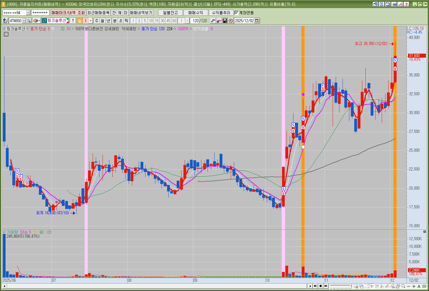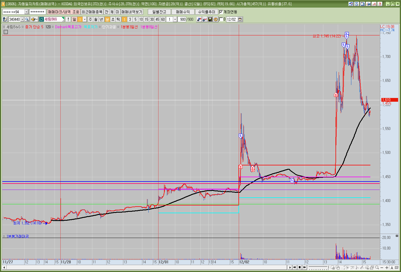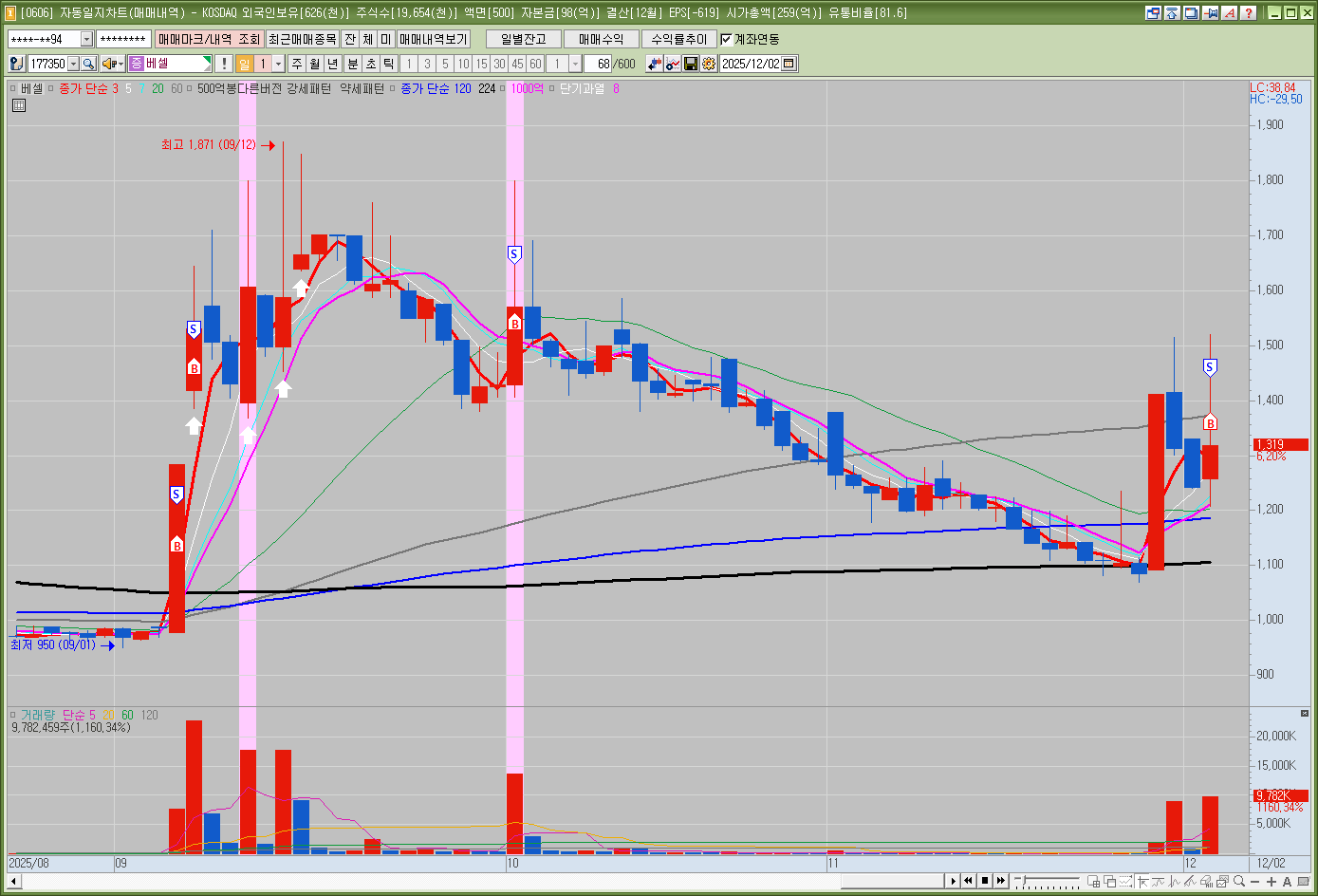 호가가 워낙 얇고 변동성이 커서 매매하기 쉽지 않다. 욕심들어가면 물리기 십상이다. 적어도 본절 탈출 기회에서는 매도 했어야 한다. 이후의 대응도 아쉽다. 충분히 기다렸으면 더 좋은 매마가 됐는데 항상 급하다.