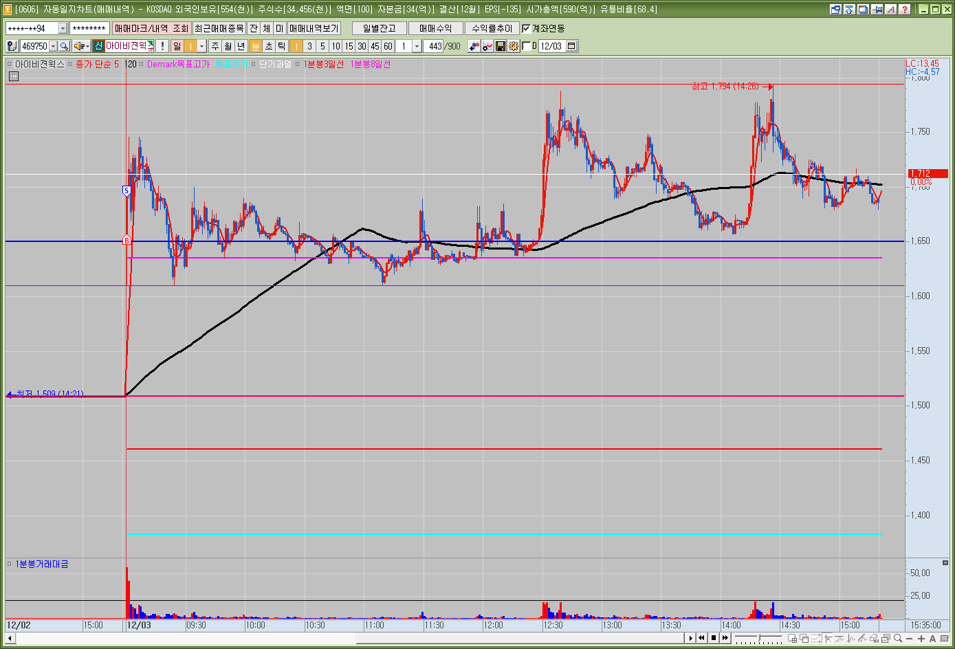 매매한 종목의 일봉, 분봉의 자리