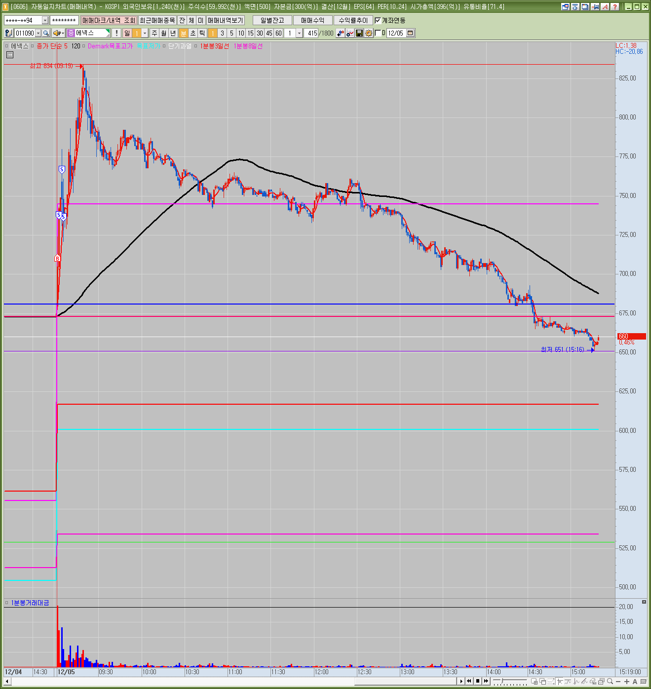 호가가 워낙 얇아서 매매하기 쉽지 않고 비중을 태울 수도 없는 종목이긴하다. 이런 종목보다는 비중을 태울 수 있는 종목을 매매하자.