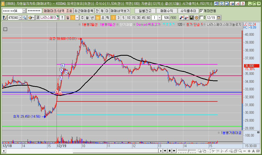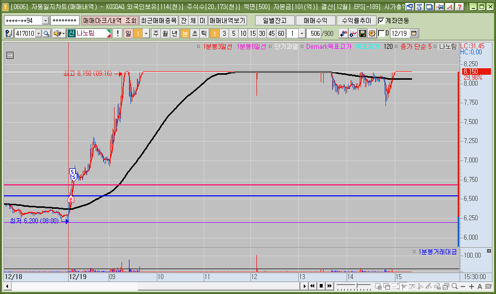 매매한 종목의 일봉, 분봉의 자리