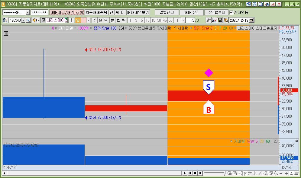 원칙에 맞게 매매했다. 시황이 강력해서 비교적 쉽게 매매할 수 있었다. 시가 및 120분선 기준으로 매매해서 손익비도 좋은 위치였다. 매도하고 슈팅은 어쩔 수 없다. 수익에 감사해야한다. 다만 안마진을 확보해놓고 시황을 보면서 수익을 극대화할 수도 있어야 한다.