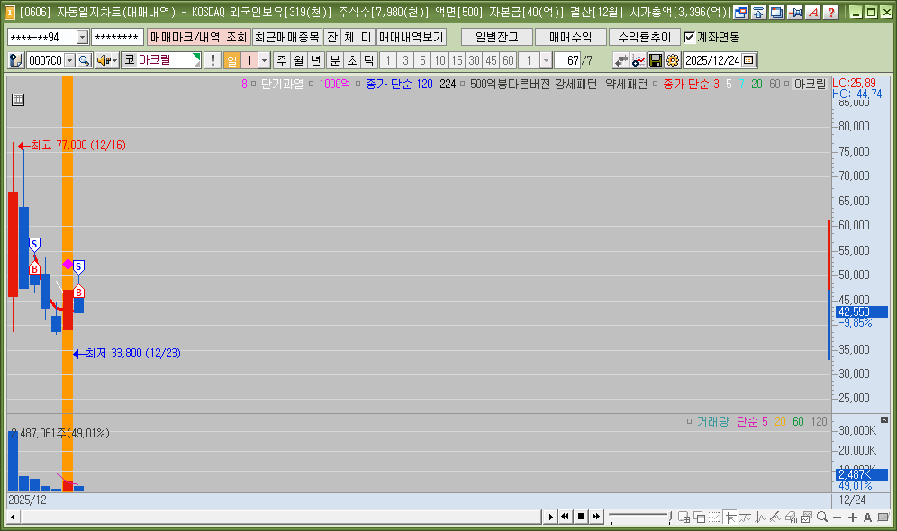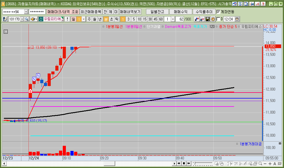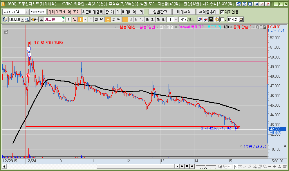 매매한 종목의 일봉, 분봉의 자리