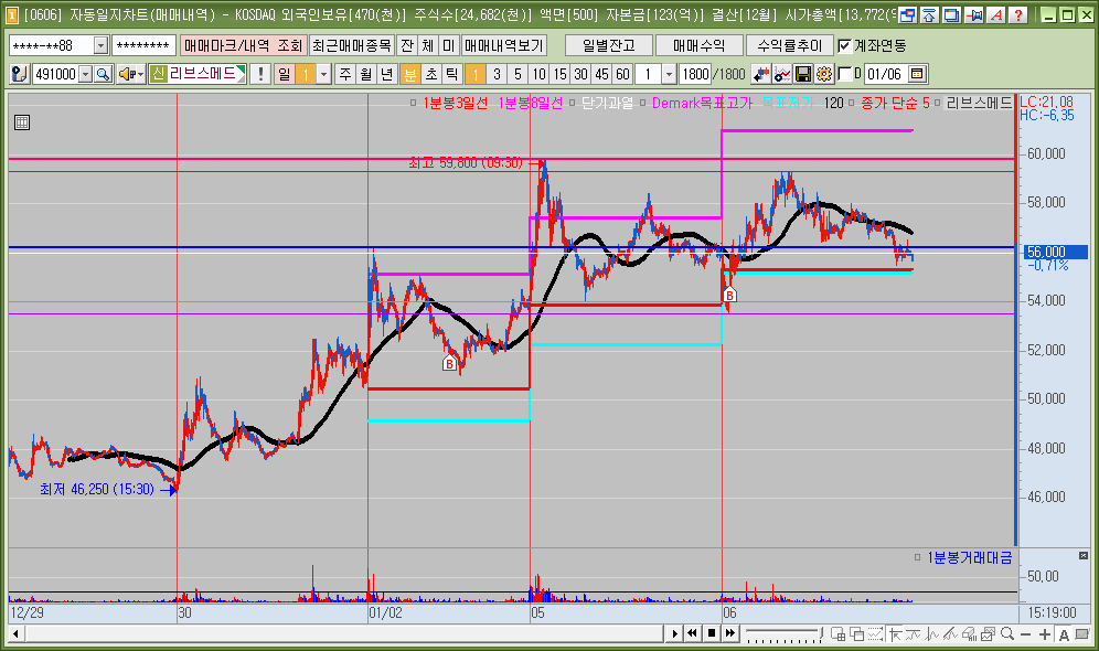 매매한 종목의 일봉, 분봉의 자리