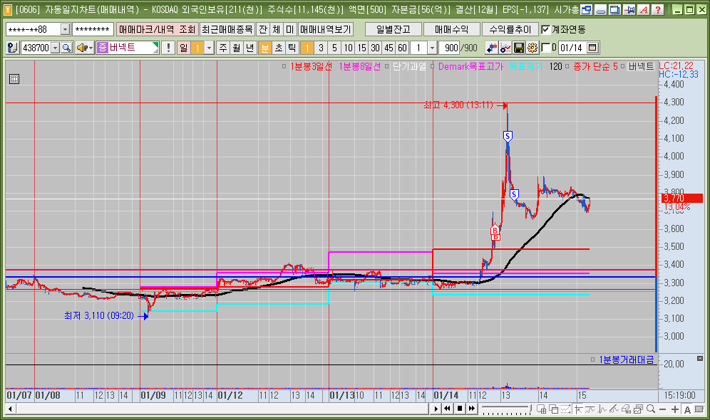 동전주고 호가도 얇고 시총도 워낙 적은 종목이라 비중을 강하게 매매하기는 쉽지 않다. 무조건 수줄튀 해야하는 종목이다. 매도 이후의 슈팅은 어쩔 수 없다.