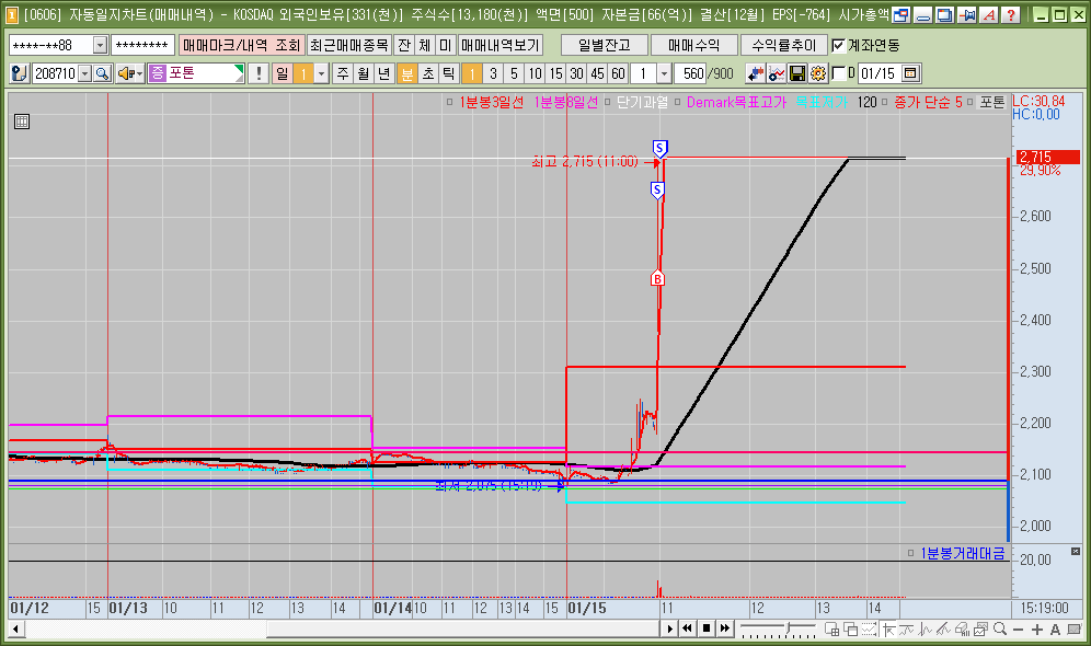 시황이 나쁘지 않았고 일봉 위치가 좋아서 매매했다. 사실 재료가 그렇게 좋은 재료는 아니고 대표 포부가 전부이긴 하다. 매수 직후 상한가 들어갔는데 재료가 약하고 호가가 얇다고 판단해서 수익금 제외하고 전량 매도했다.