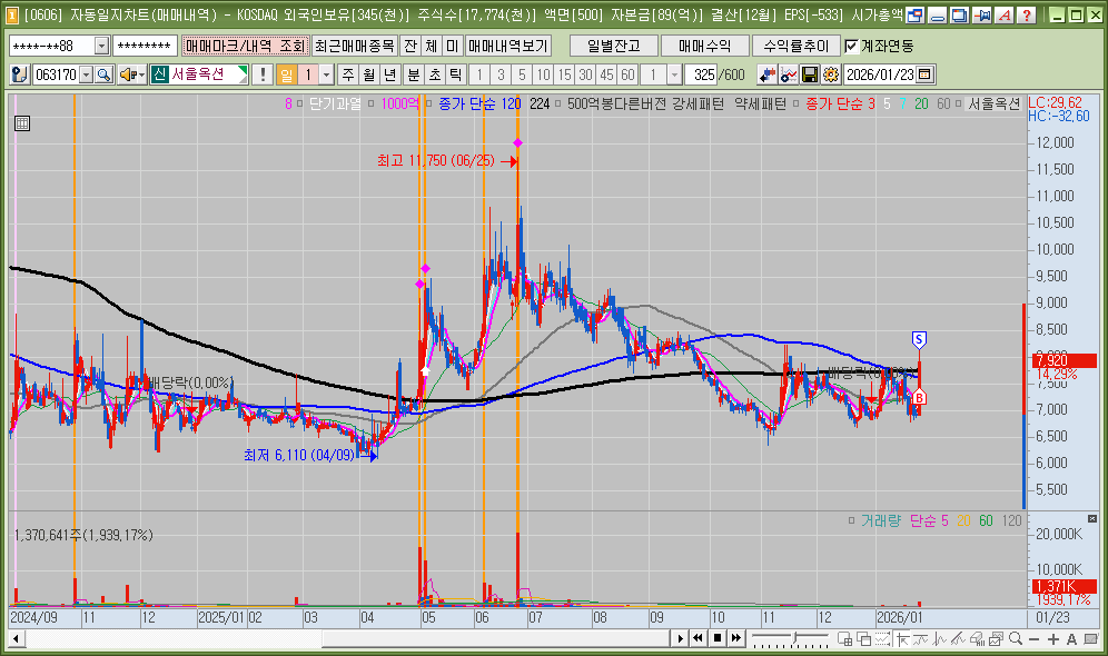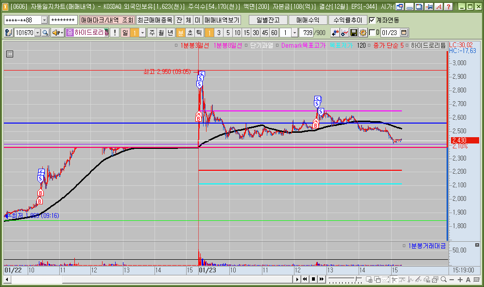 매매한 종목의 일봉, 분봉의 자리
