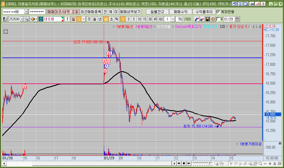 매매한 종목의 일봉, 분봉의 자리