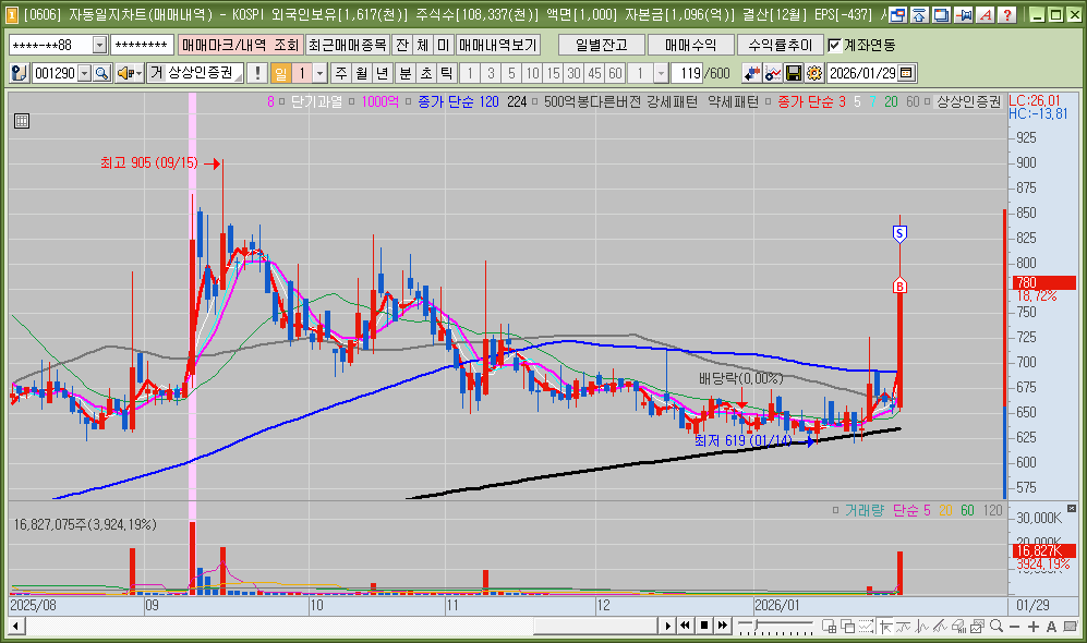 SK증권 반등하는 모습 보면서 분봉 지지에서 함께 매매