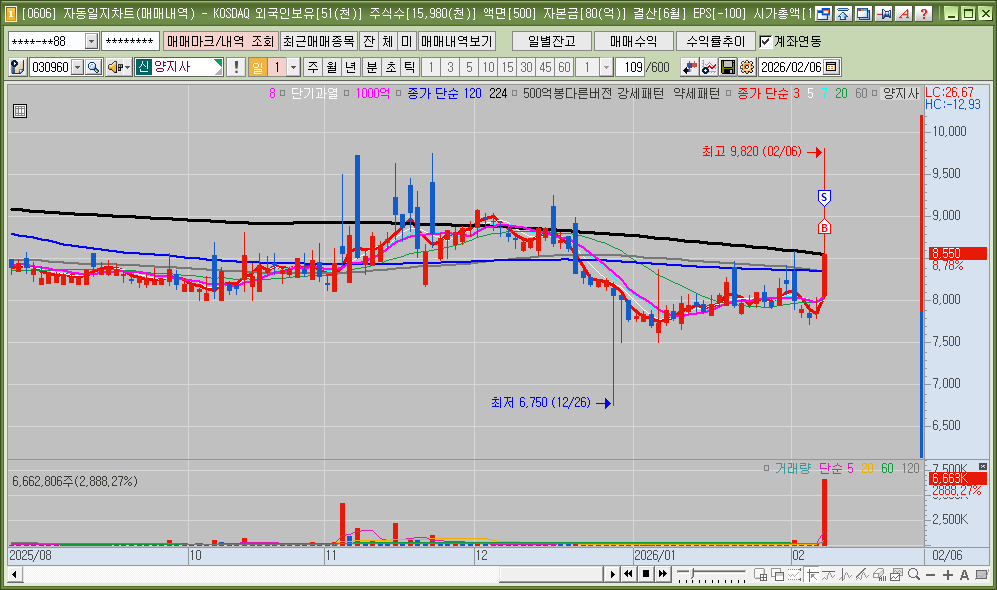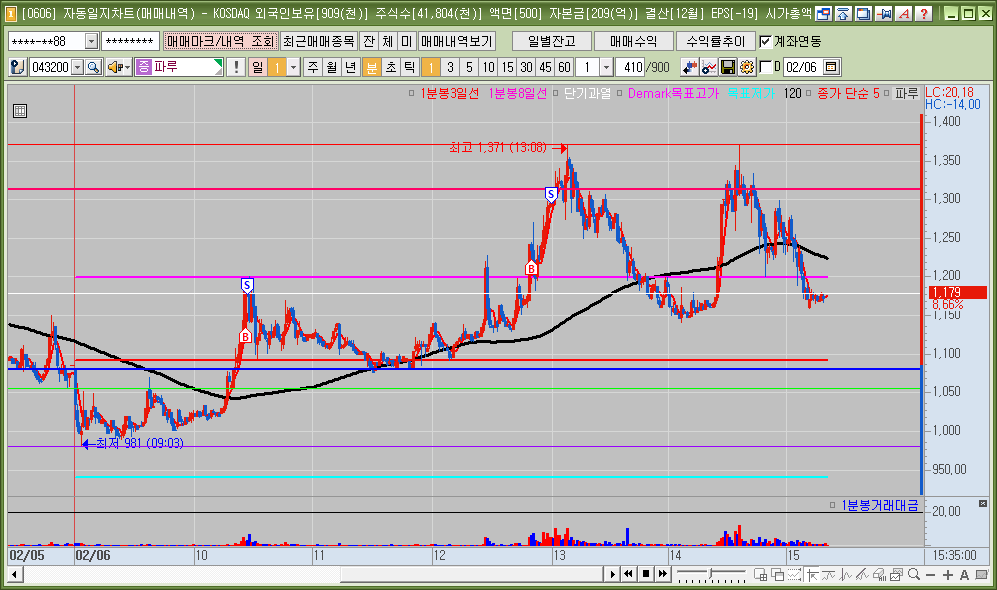 매매한 종목의 일봉, 분봉의 자리