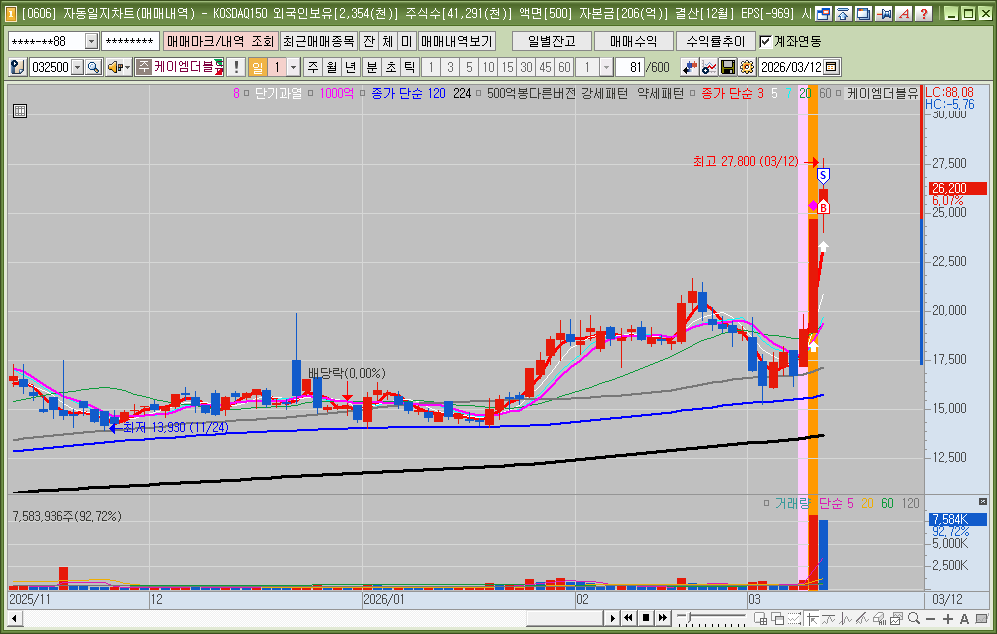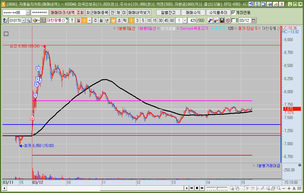 신고가 매매로 접근했다. GTC일정에 대한 기대감도 여전히 살아있고 일봉 위치, 시황, 시가 위치등 모든 것이 맞아떨어져서 매매난이도가 그리 높지는 않았다. 다만 프로그램 매도가 쏟아지고 유가도 오르는 상황이라 길게 수익을 극대화하지는 못했다. 그러메도 수익에 감사한다.