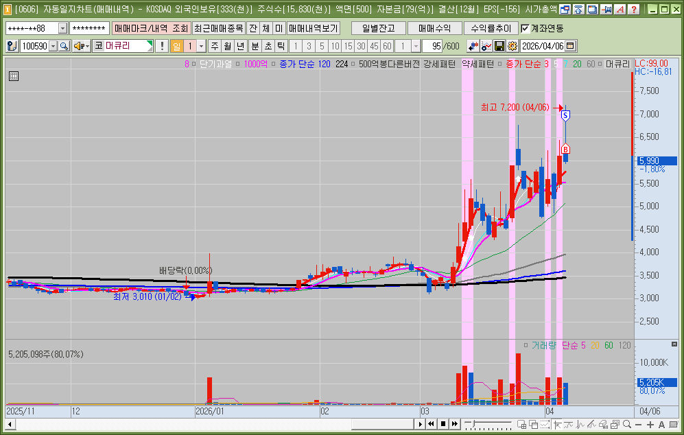 매매한 종목의 일봉, 분봉의 자리