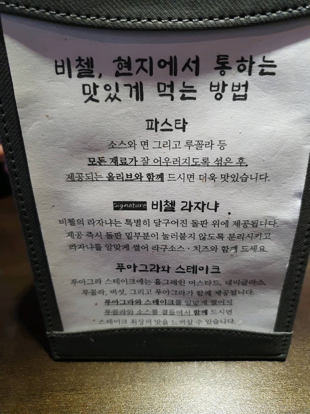 특히, 라구 소스 라자냐는 비첼의 시그니쳐 메뉴로, 추천 딱지도 붙어 있었다.
